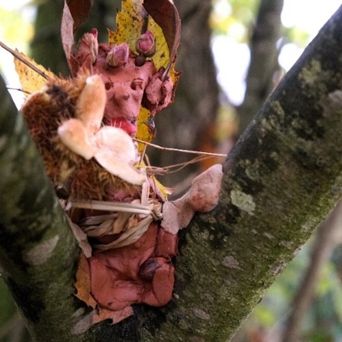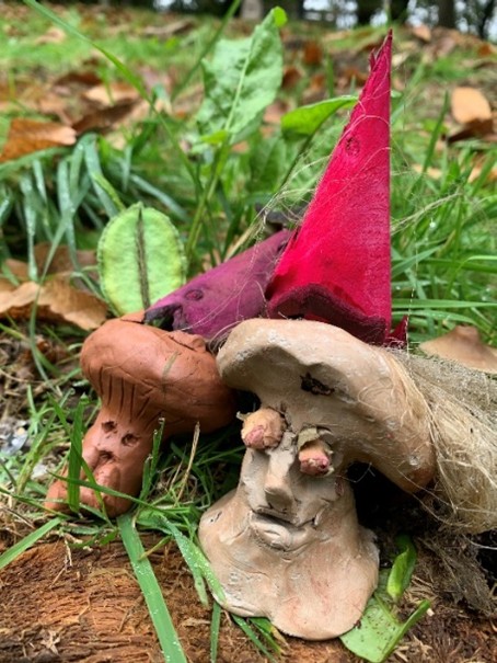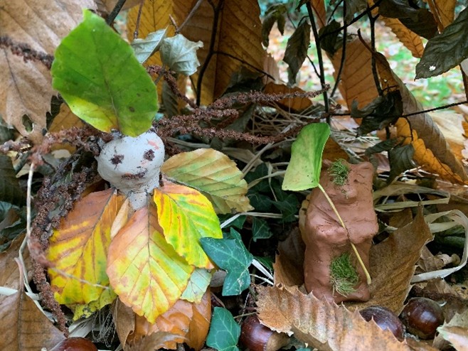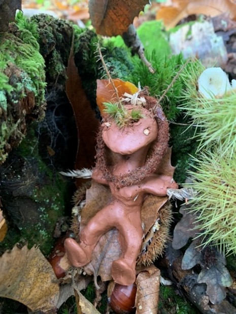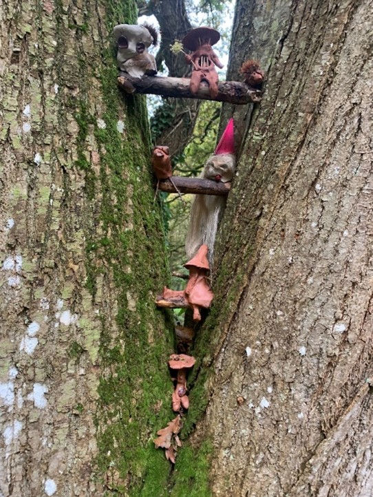 Auch überall in den Büschen und in den alten Bäumen waren phantasievolle Waldwesen zu treffen, die im Laufe des Nachmittags entstanden waren.