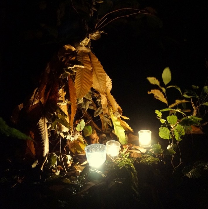 Together with the group Keltoi BZE & Nemeton Brecelien, we launched a new forest art event in the Broceliande forest after International Day of Forests. We had beautiful weather all day, and the rain had stopped. However, it took a lot of preparation for the forest art and choosing the best locations. The good organization of our friends and their excellent cooperation made the large spiral of lights possible. In the meantime, others had taken care of appropriate routes to parking spaces, then signposted them, and thus avoided a minor traffic jam. Many more visitors came than we expected. Thanks to all the helpers and participants.
